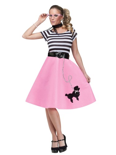 50’s Soda Shop Sweetie Adult Costume includes a dress, belt, and neckerchief for a look that is just dandy! This costume will make you the prettiest girl at any 50s theme party and also makes a charming theater costume as well!