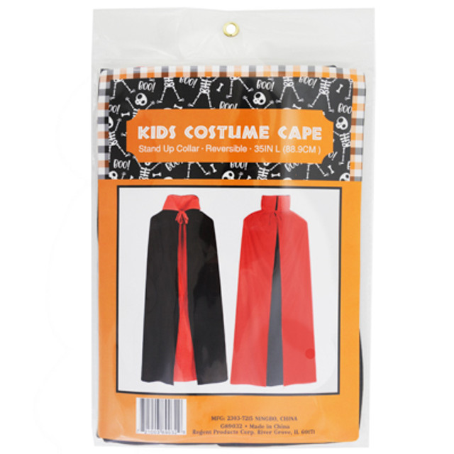 CAPE KIDS REVERSIBLE BLACK/RED 35IN L W/STAND UP COLLAR