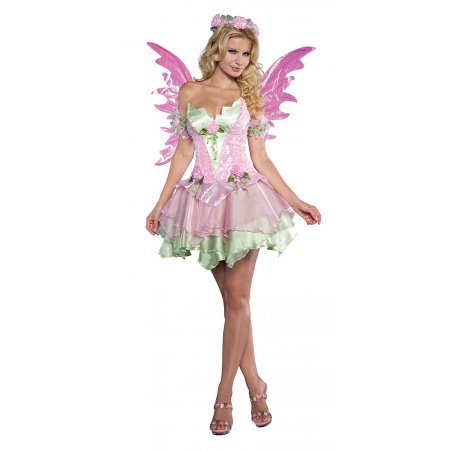 INCLUDES IRIDESCENT SEQUIN CORSET WITH PEARL TRIM AND FLOWERS ACCENTS, CRYSTAL ORGANZIA AND CHAMERMEUSE LAYERED SKIRT, FLORAL HEADPIECE, AND IRIDESCENT WINGS.