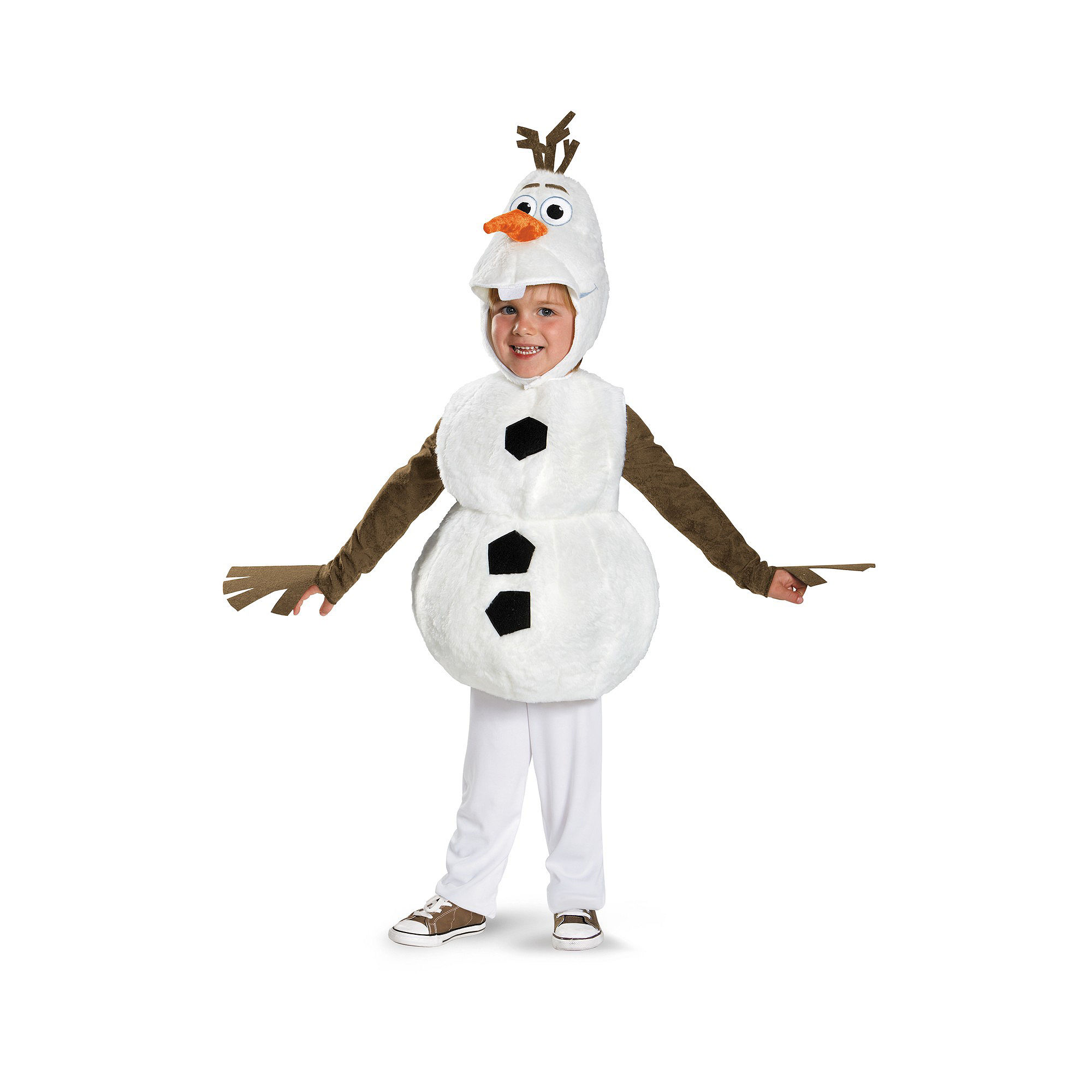 This costume includes a jumpsuit with plush overlay, and a soft character headpiece. The buttons on Olaf appear crooked for that melting affect. Does not include socks. This is an officially licensed Disney Frozen costume.