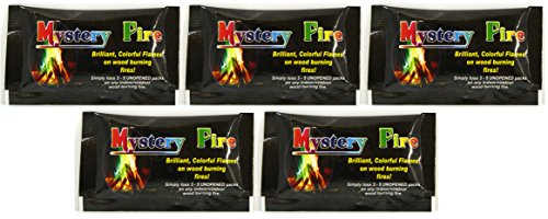 Add color to your fire! Throw 1 to 3 pouches into a fire and watch the flames magically change colors. Can be used in both indoor and outdoor fires. A unique way to enjoy a brilliant display of colorful flames on wood burning fires. A single pouch provides a rainbow of colors, including dark & light blues, purple, red, green and yellow. Use on Camp Fires, Backyard Fire Pits, Indoor Fireplaces, For All Wood Burning Fireplaces.