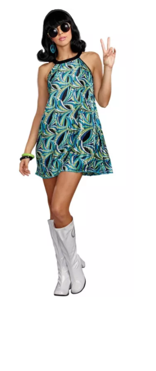 Groovy baby! In this retro-print mod style dress, tranform your modern self into the free-loving, swinging 60s. You can’t go wrong with this The Beat Goes On retro styled costume for your next flashback event.