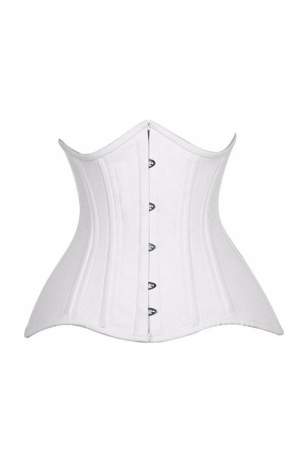 Top Drawer Curvy White Cotton Double Steel Boned Under Bust Waist Cincher Corset